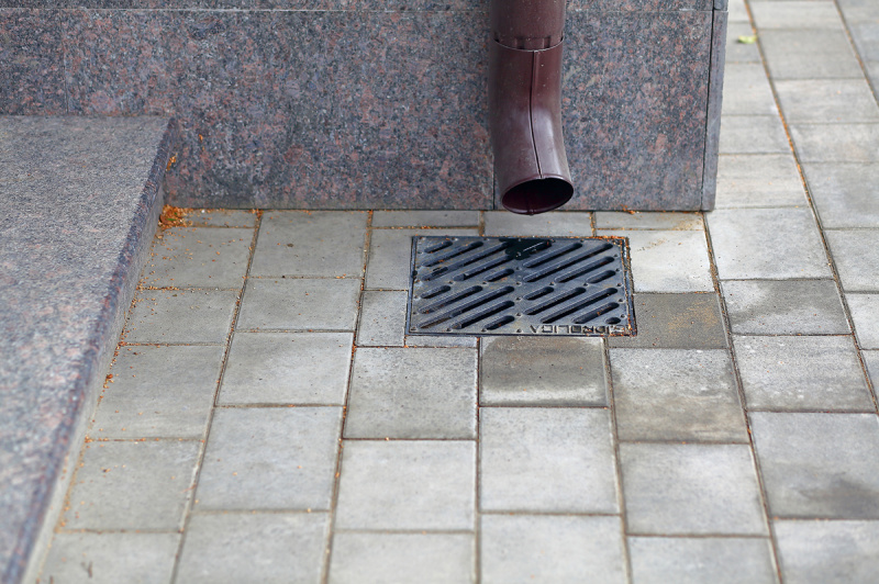 - Точечные дождеприемники: Наиболее современное и эффективное решение. Водосточная труба заводится напрямую в специальный дождеприемник, который через систему трубопроводов соединяется с ливневой канализацией или дренажным колодцем. Полностью исключает контакт водного потока с поверхностью мощения.