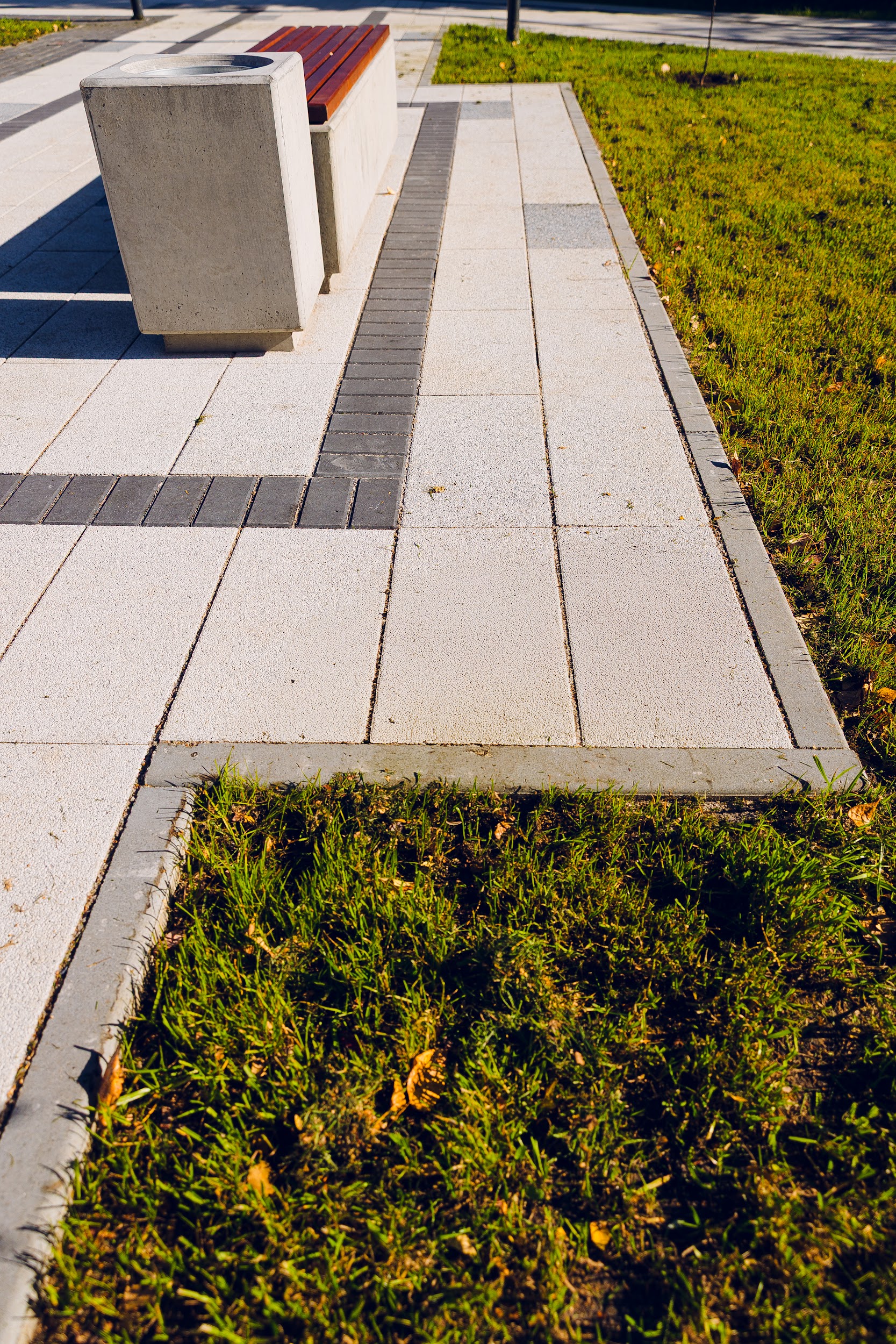 Стандартный серый цвет тротуарного бордюра не только самый бюджетный, но и самый универсальный. Серый — лучшая «рамка» для любого ландшафта, он не конфликтует с фасадами и другими элементами благоустройства. Является идеальной базой для сочетания с нейтральными или темными акцентами. Часто сочетается с тротуарной плиткой серого, черного и белого цветов.