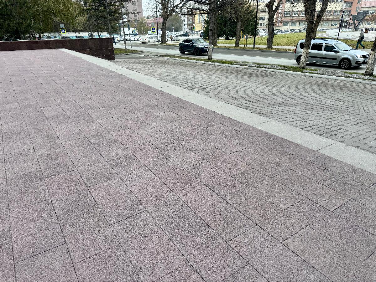 - Повышенная безопасность: Фактурная поверхность обеспечивает отличное сцепление с обувью и колесами СИМ даже при влажной погоде, что делает эту плитку идеальным выбором для зон с высокой проходимостью: входных групп, общественных пространств, набережных и тротуаров центральных улиц.