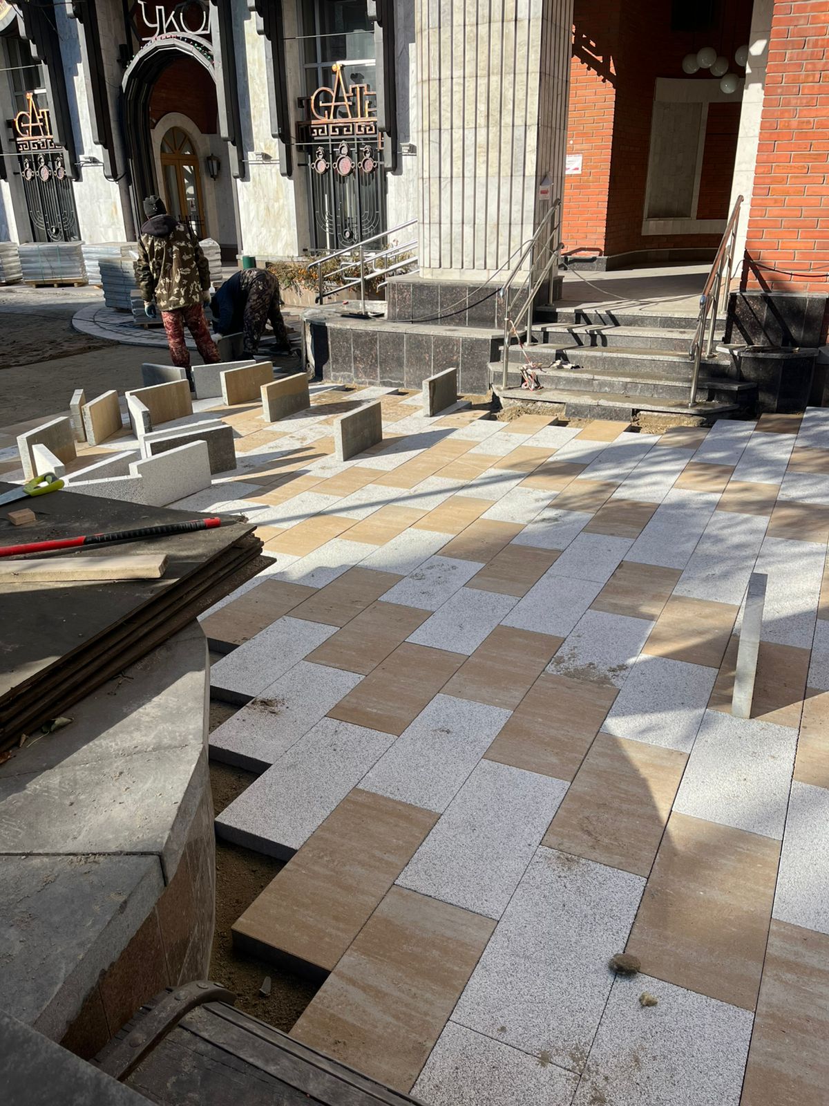 - Гибкость в дизайне: Легко комбинируется с крупноформатными плитами других размеров и камнями мощения.
