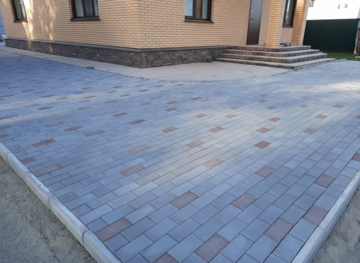 В цвете «Стандарт коричневый» плитка смягчает пространство: визуально «приземляет» и делает ландшафт более уютным и завершенным по сравнению с холодными или яркими цветами. Пыль, следы от шин или естественные загрязнения менее заметны на коричневом фоне, что позволяет покрытию сохранять опрятный вид.