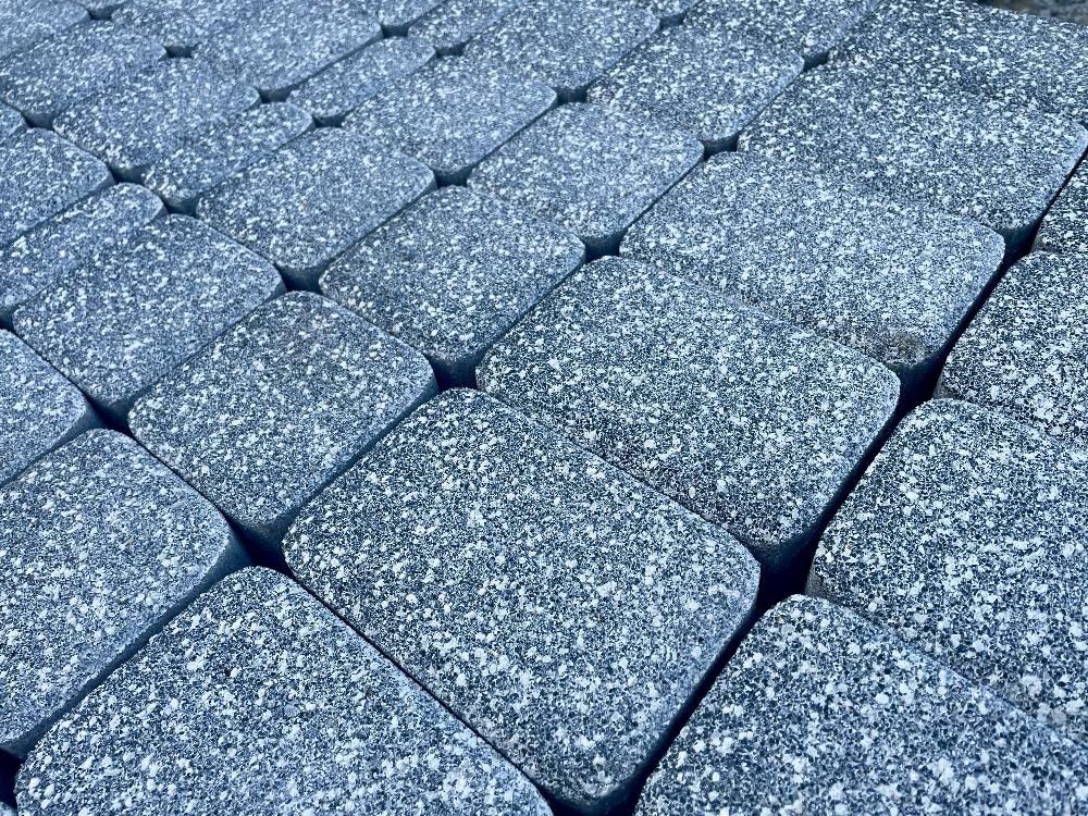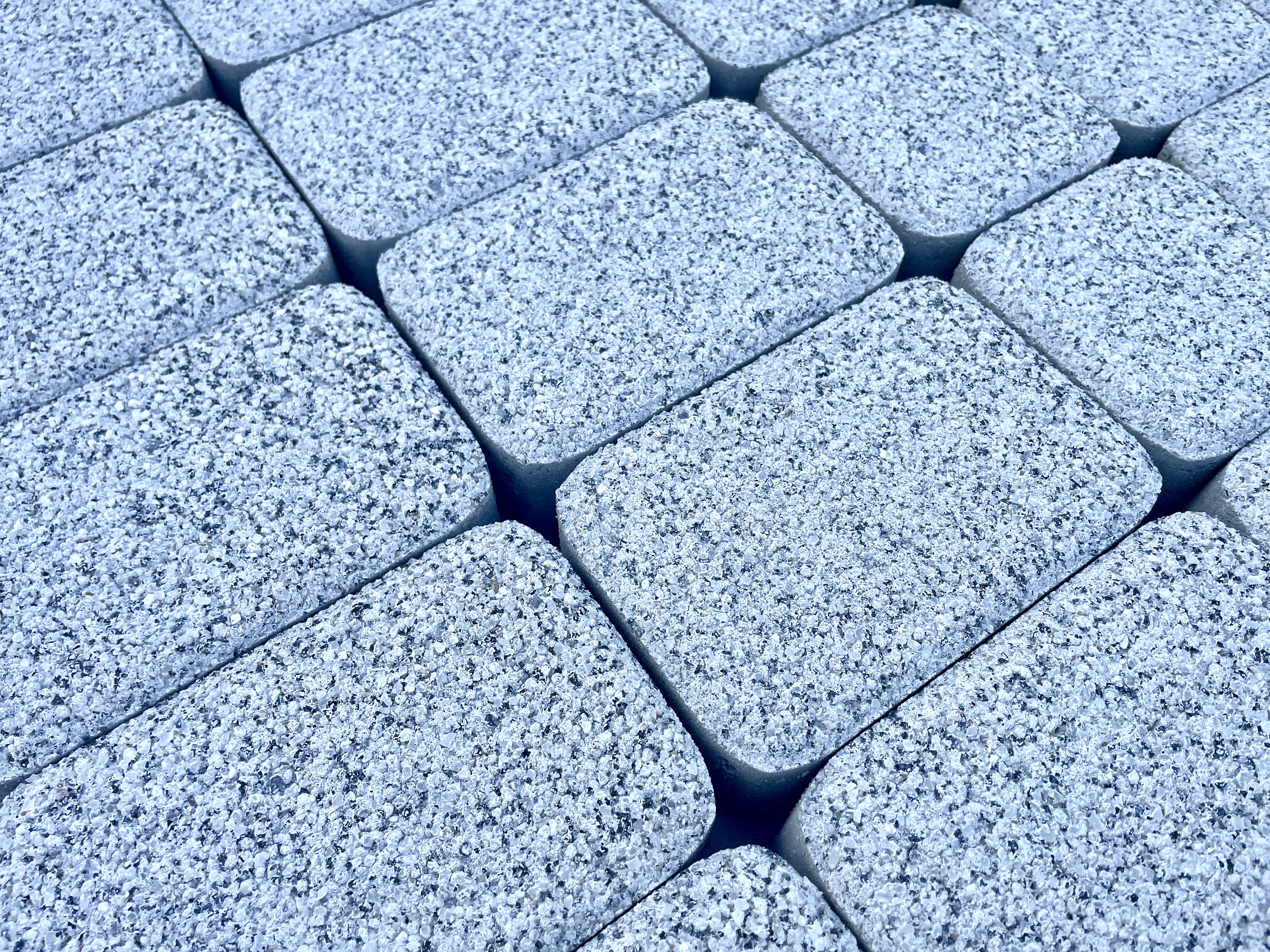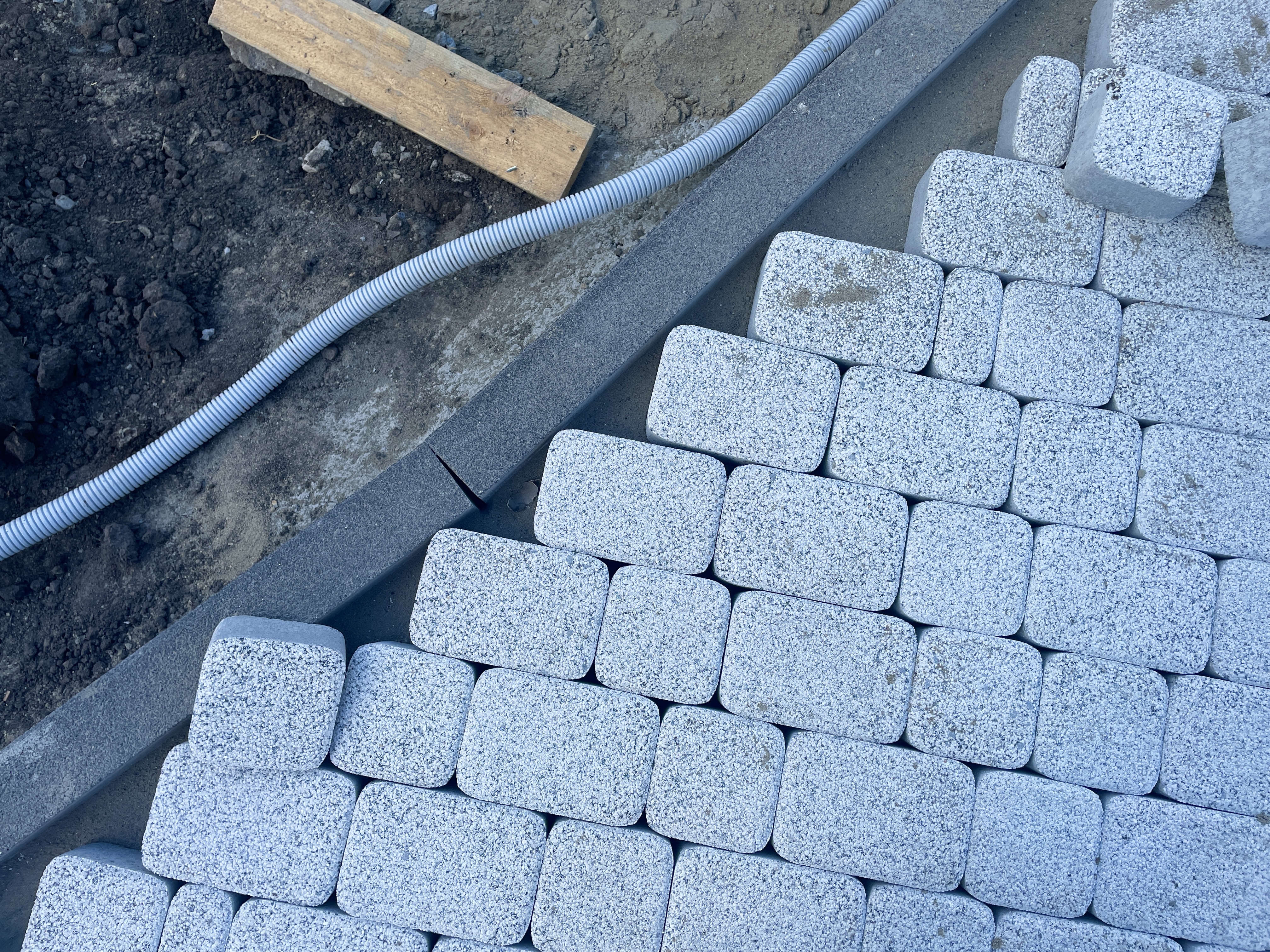 Для мощения дорожек использовалась тротуарная плитка завода «Ревертек» - в мультиформатной форме «Классико» различных фактурах «Мрамор». Плитка производится с натуральной мраморной крошкой в лицевом слое, что делает покрытие не только эстетичным, но и более износостойким и безопасным для прогулок.