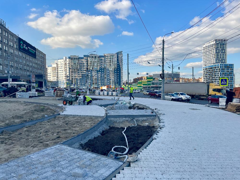 Уже уложены новые пешеходные дорожки, далее будут установлены малые архитектурные формы, высажены деревья и кустарники, которые превратят площадь в полноценный сквер.