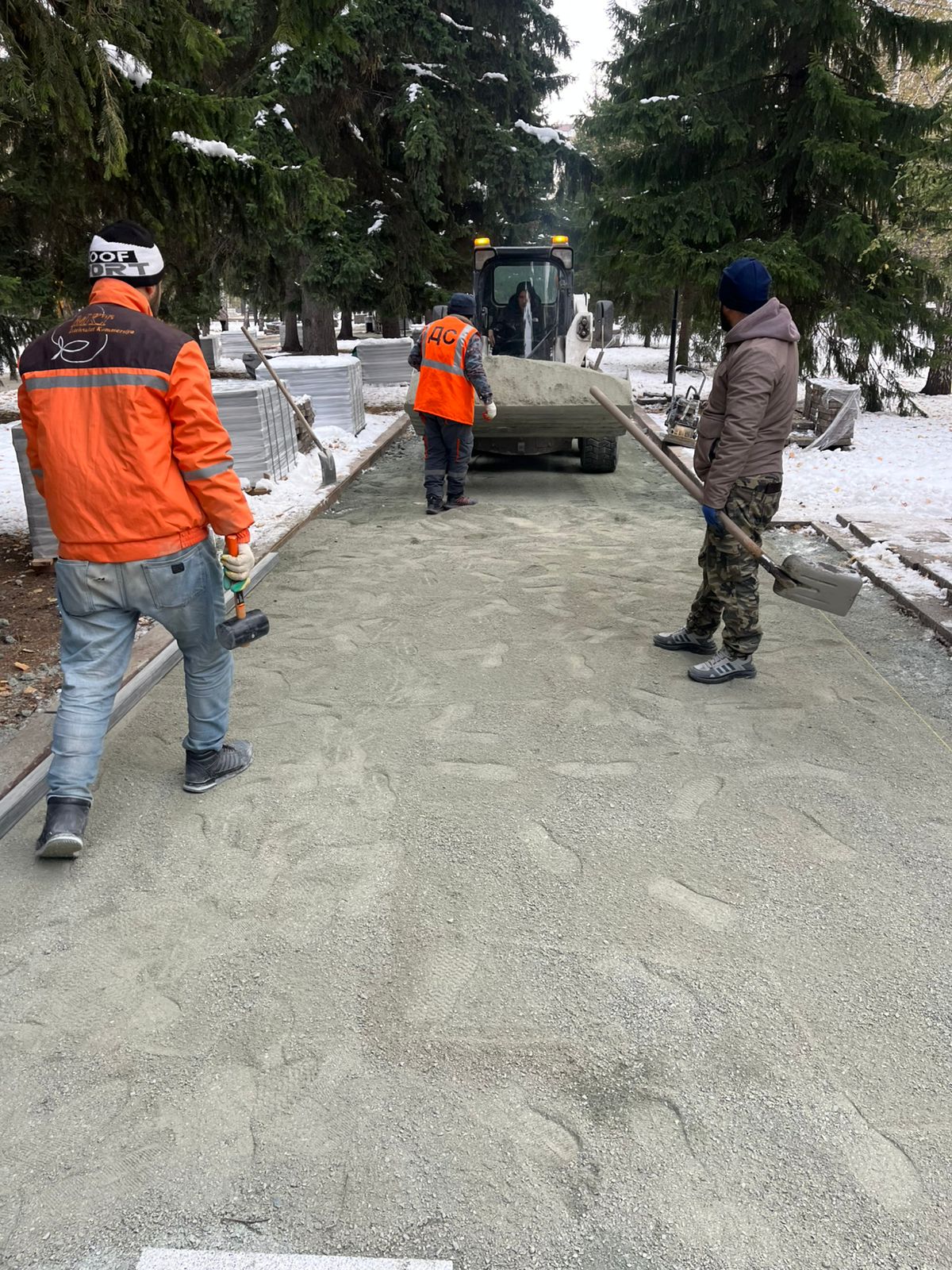 На объекте производят ремонт мозаичного бетонного покрытия, а также замену основания и укладку тротуарных плит на главной пешеходной аллее сквера Славы. Особое внимание при реконструкции уделяют долговечности используемых технологий и качеству материалов - памятник должен служить долгие годы, оставаясь местом поклонения героям Великой отечественной войны.
