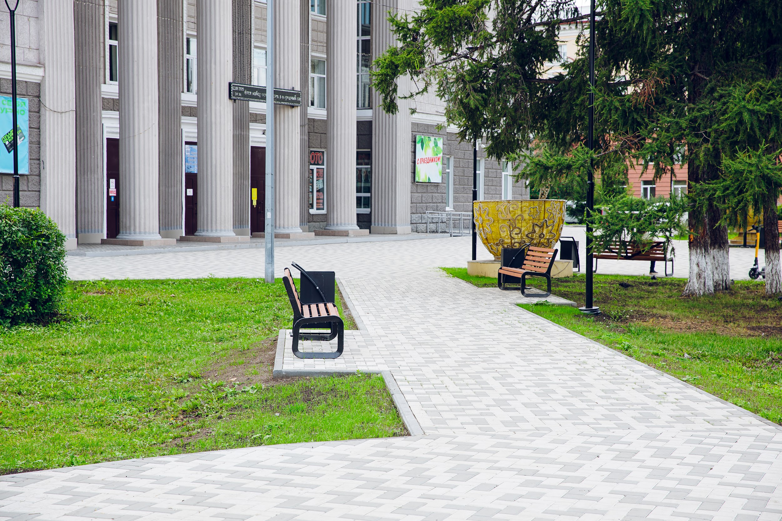 В 2025г. в Кемерово обновили сквер возле Дворца культуры имени 50-летия Октября. Благоустройство территории проводилось с прицелом на долговечность, безопасность и визуальный комфорт жителей. Вместо устаревшего асфальта уложили покрытие из тротуарной плитки, запроектировали современную систему освещения и увеличение площади зеленых насаждений.